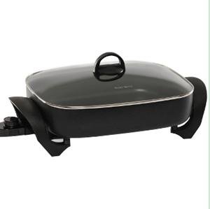 West Bend 12" x 15" Oblong Skillet. This skillet is 3 inches deep together with a non-stick coating, the skillet is dishwasher protected together with the electrical plug removed, the tilt-leg function lets in for more straightforward serving and draining, glass lid with steam vent is dishwasher securer, cool touch handles.